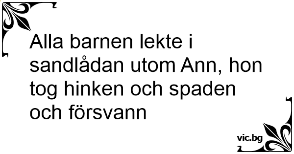 Alla barnen lekte i sandlådan utom Ann, hon tog hinken och spaden och försvann