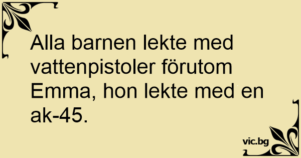 Alla barnen lekte med vattenpistoler förutom Emma, hon lekte med en ak-45.