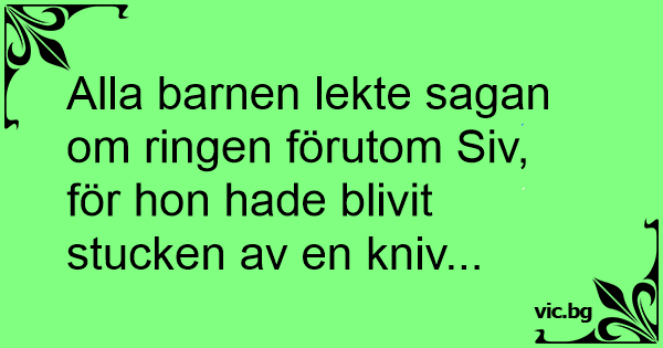 Alla barnen lekte sagan om ringen förutom Siv, för hon hade blivit stucken av en kniv...