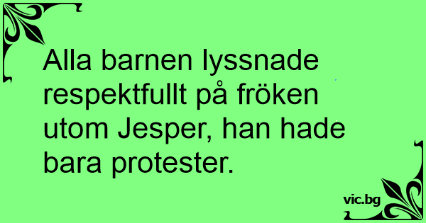 Alla barnen lyssnade respektfullt på fröken utom Jesper, han hade bara protester.