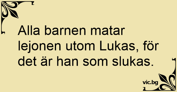 Alla barnen matar lejonen utom Lukas, för det är han som slukas.