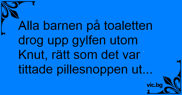 Alla barnen på toaletten drog upp gylfen utom Knut, rätt som det var tittade pillesnoppen ut...