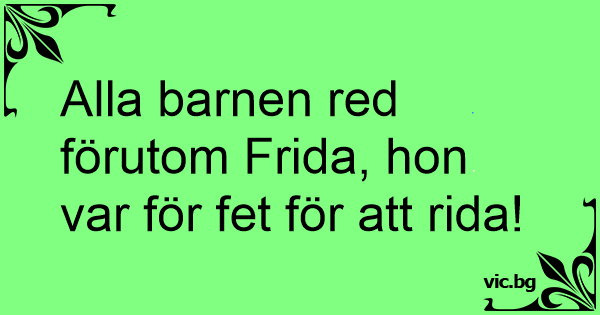 Alla barnen red förutom Frida, hon var för fet för att rida!