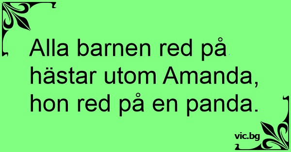 Alla barnen red på hästar utom Amanda, hon red på en panda.