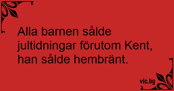 Alla barnen sålde jultidningar förutom Kent, han sålde hembränt.