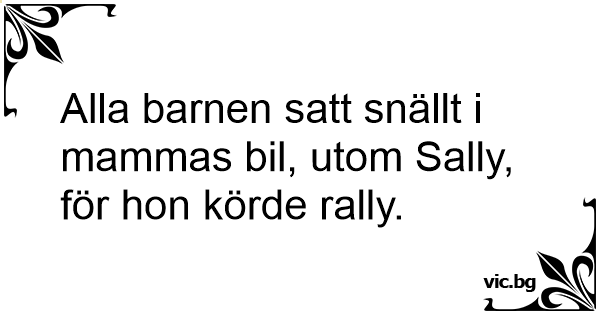 Alla barnen satt snällt i mammas bil, utom Sally, för hon körde rally.