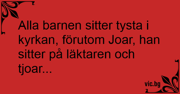 Alla barnen sitter tysta i kyrkan, förutom Joar, han sitter på läktaren och tjoar...