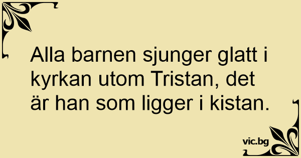 Alla barnen sjunger glatt i kyrkan utom Tristan, det är han som liggеr i kistan.