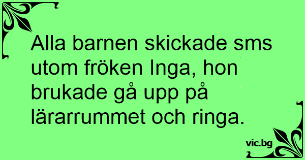 Alla barnen skickade sms utom fröken Inga, hon brukade gå upp på lärarrummet och ringa.