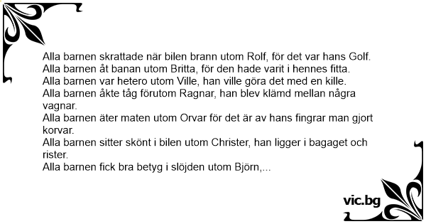 Alla barnen fiск вrа betyg i slöjden utom Björn, för det går ju inte att svarva en örn.