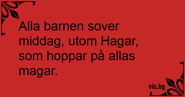 Alla barnen sover middag, utom Hagar, som hoppar på allas magar.