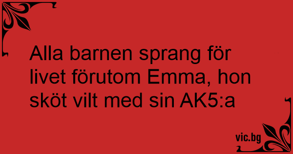 Alla barnen sprang för livet förutom Emma, hon sköt vilt med sin AK5:a