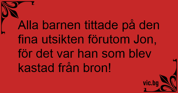 Alla barnen tittade på den fina utsikten förutom Jon, för det var han som blev kastad från bron!
