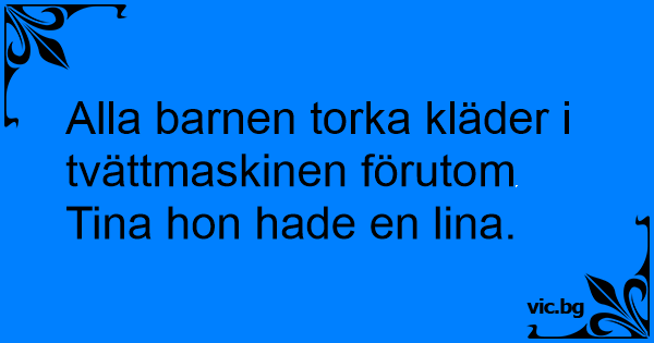 Alla barnen torka kläder i tvättmaskinen förutom Tina hon hade en lina.