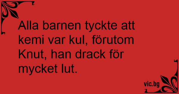 Alla barnen tyckte att kemi var kul, förutom Knut, han drack för mycket lut.