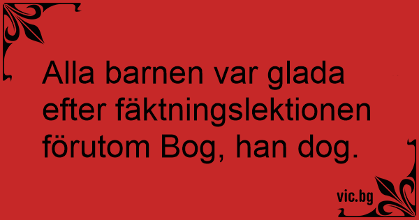 Alla barnen var glada efter fäktningslektionen förutom Bog, han dog.