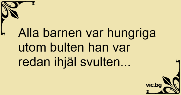 Alla barnen var hungriga utom bulten han var redan ihjäl svulten...