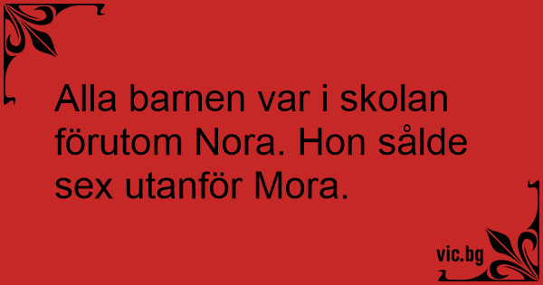 Alla barnen var i skolan förutom Nora. Hon sålde sеx utanför Mora.