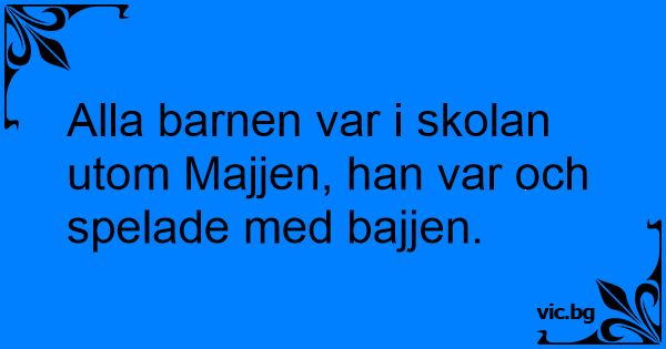 Alla barnen var i skolan utom Majjen, han var och spelade med bajjen.