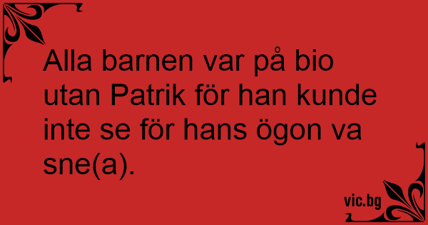 Alla barnen var på bio utan Patrik för han kunde inte se för hans ögon va sne(a).