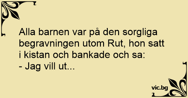 Alla barnen var på den sorgliga begravningen utom Rut, hon satt i kistan och bankade och sa: