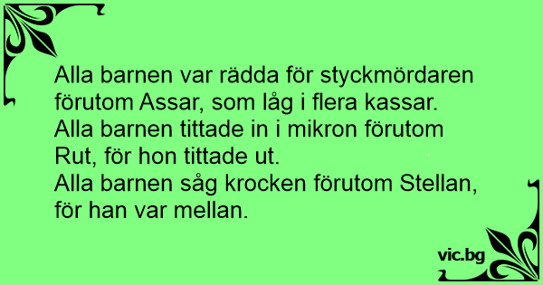 Alla barnen såg krocken förutom Stellan, för han var mellan.