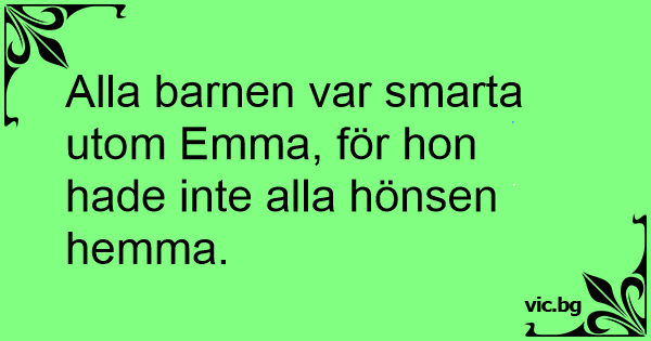 Alla barnen var smarta utom Emma, för hon hade inte alla hönsen hemma.