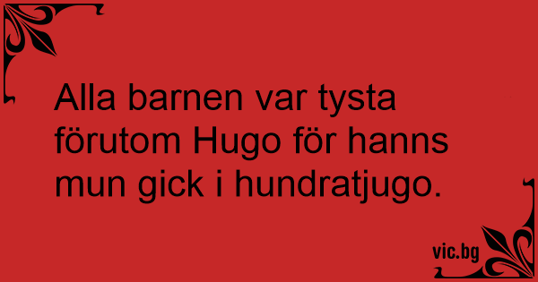Alla barnen var tysta förutom Hugo för hanns mun gick i hundratjugo.