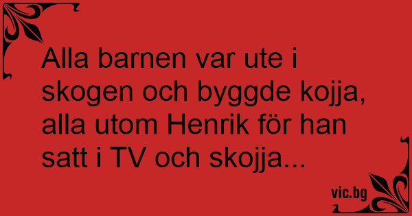 Alla barnen var ute i skogen och byggde kojja, alla utom Henrik för han satt i TV och skojja...