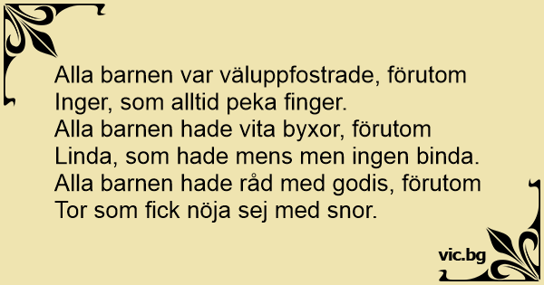 Alla barnen hade vita byxor, förutom Linda, som hade mens men ingen binda.