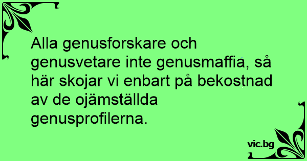 Alla genusforskare och genusvetare inte genusmaffia, så här skojar vi enbart på bekostnad av de ojämställda genusprofilerna.