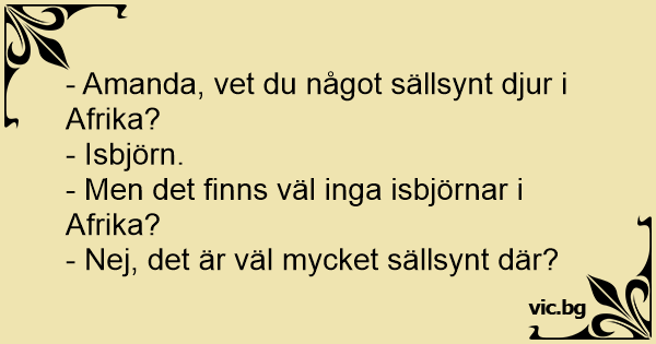 - Amanda, vet du något sällsynt djur i Afrika?