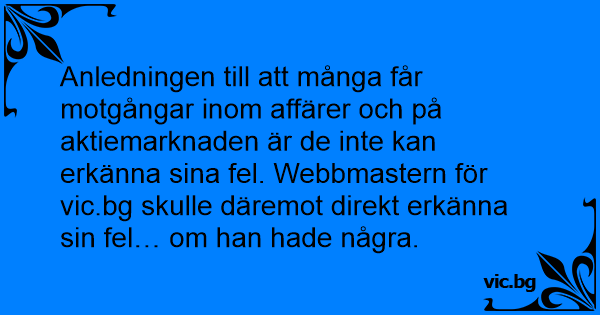 Anledningen till att många får motgångar inom affärer och på aktiemarknaden är de inte kan erkänna sina fel. Webbmastern för vic.bg skulle däremot direkt erkänna sin fel… om han hade några.