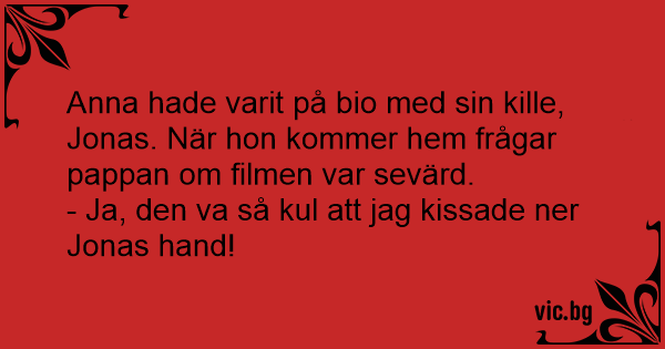 Anna hade varit på bio med sin kille, Jonas. När hon kommer hem frågar pappan om filmen var sevärd.