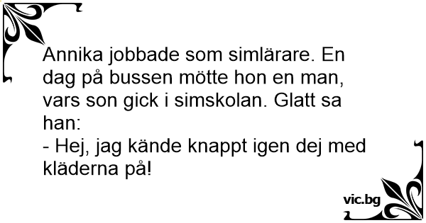 Annika jobbade som simlärare. En dag på bussen mötte hon en man, vars son gick i simskolan. Glatt sa han: