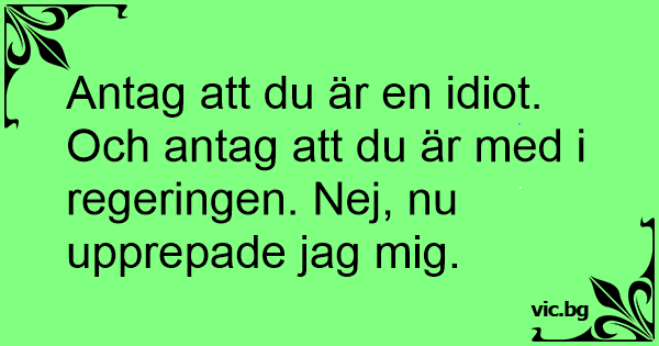 Antag att du är en idiот. Och antag att du är med i regeringen. Nej, nu upprepade jag mig.