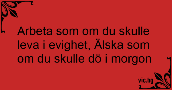 Arbeta som om du skulle leva i evighet, Älska som om du skulle dö i morgon