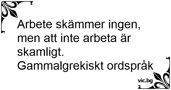 Arbete skämmer ingen, men att inte arbeta är skamligt.