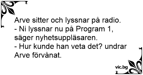 - Ni lyssnar nu på Program 1, säger nyhetsuppläsaren.