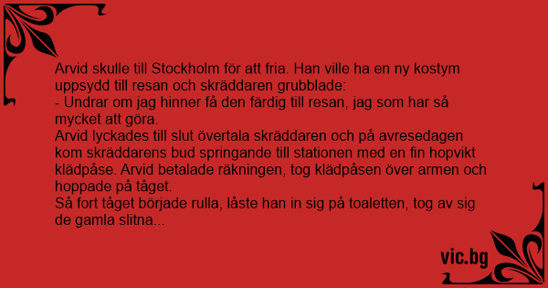 Arvid skulle till Stockholm för att fria. Han ville ha en ny kostym uppsydd till resan och skräddaren grubblade: