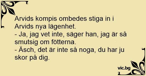 - Ja, jag vet inte, säger han, jag är så smutsig om fötterna.