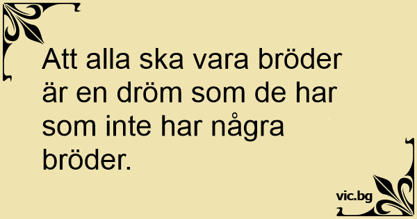 Att alla ska vara bröder är en dröm som de har som inte har några bröder.