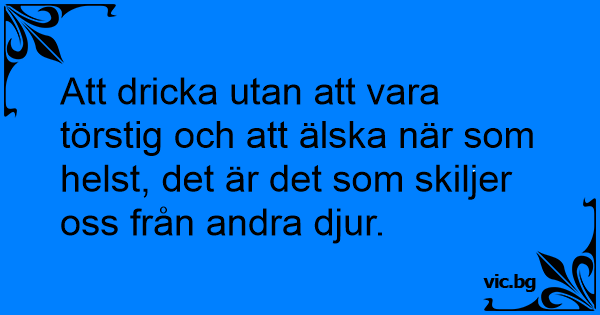 Att dricka utan att vara törstig och att älska när som helst, det är det som skiljer oss från andra djur.