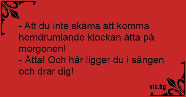 - Åtta! Och här liggеr du i sängen och drar dig!