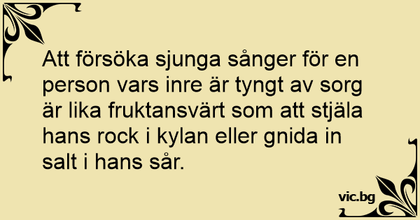 Att försöka sjunga sånger för en person vars inre är tyngt av sorg är lika fruktansvärt som att stjäla hans rock i kylan eller gnida in salt i hans sår.