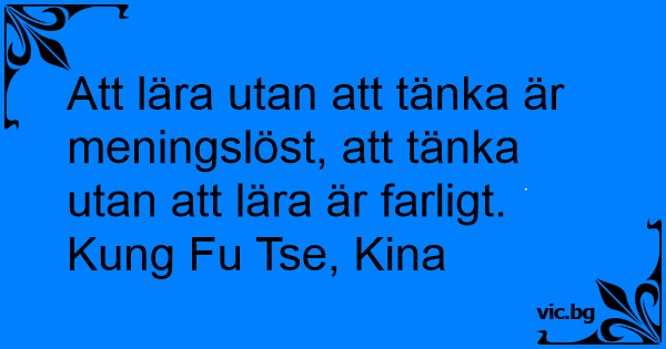 Att lära utan att tänka är meningslöst, att tänka utan att lära är farligt. Kung Fu Tse, Kina