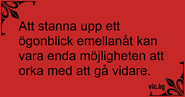 Att stanna upp ett ögonblick emellanåt kan vara enda möjligheten att orka med att gå vidare.