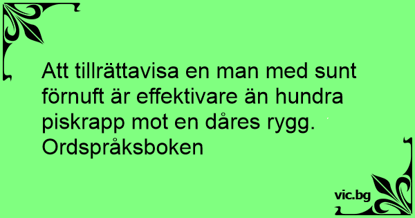 Att tillrättavisa en man med sunt förnuft är effektivare än hundra piskrapp mot en dåres rygg.