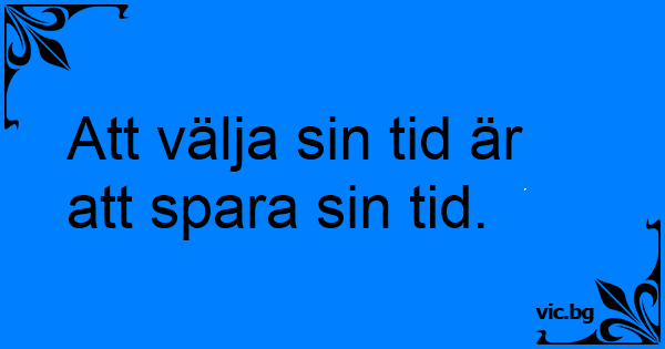 Att välja sin tid är att spara sin tid.