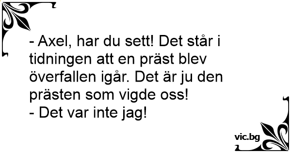 - Axel, har du sett! Det står i tidningen att en präst blev överfallen igår. Det är ju den prästen som vigde oss!